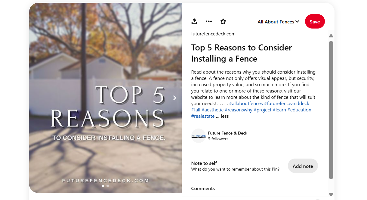 Future Fence & Deck is a leading provider of wood and vinyl fencing, shade structures, patio covers, pergolas, gates, and concrete products in North Texas. They needed to create accounts across multiple social media platforms such as Facebook, Instagram, and Pinterest to reach their target market and increase brand awareness. Additionally, they needed to optimize their website for search engines by utilizing keywords and copy to offer even more value to their clients.
